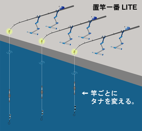 ウキを使わずに、竿下のポイントをミャクで釣るのが関西のズボ釣りです。船でも堤防でも、仕掛けを手元にズボっと落とし込む釣りをズボ釣りと呼びます。ズボ釣りは沿岸を回遊するスズキを、桟橋やケーソンの上から狙う釣です。壁際を狙うので長い竿は必要ありません。タナを確実に捉えるよう、餌の位置を上下に1ヒロづつ変えて3本並べるのが基本です。