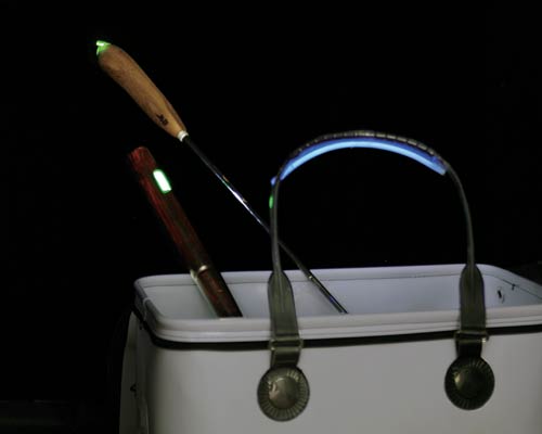 夜釣りで明る過ぎるウキは釣れない、といわれる方がいますが、わたしの場合はあまり気にはしません。薄暗いウキよりも鮮明にアタリが出ますし、夜釣りをしていても疲れません。むしろ電気ウキの光より、ヘッドライトなどの光を海面に落とすようなことを避けた方が賢明だと思います。キラキラと海面を照らす、音を立てるなどの行為は慎むべきです。さらに気を使うのであれば玉網には ケミホタル75 を折って発光させたものを巻きつけておけば、取り込みのときに海面をライトで照射することなく、クロダイを掬うことができます。