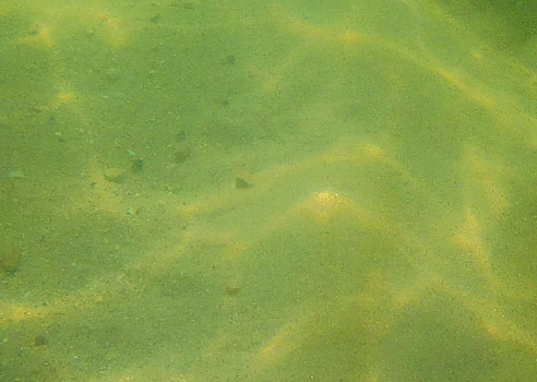 砂地は海藻が少なく、生息するのは二枚貝やムシ類がメイン。キスやカレイはいるがロックフィッシュはほとんどいない。ただし、アマダイがいるような場所にはアオハタがいるので油断はできない。