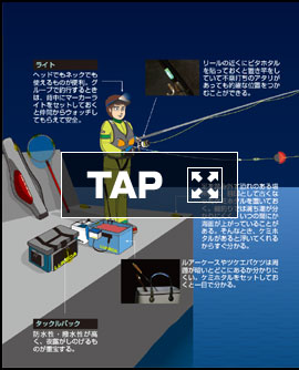 とはいえ、ロックフィッシュがどこに潜んでいるか正確には分からない。だから、たぶんこの付近に隠れているだろうと予測して、その辺りにエサを落とし込むかルアーを泳がせなくてはいけない。彼らにあまり深い考えはないから細かい操作はいらない。目の届く範囲で、エサが生きているかのように動かせばパクッと喰ってくる。