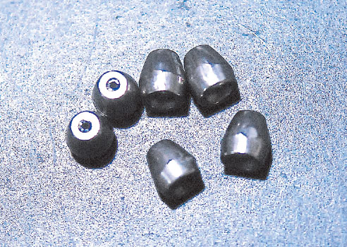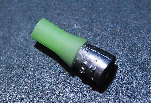 ⑥ さらに、オモリの頭にゴム管をかぶせるとクッションの役目をして喰い込みを防げる。深場の大きなオモリの場合は、石鯛釣りの真空オモリと同じように太いゴム管をかぶせるか、自転車用のタイヤチューブを巻きつければいい。![]() |