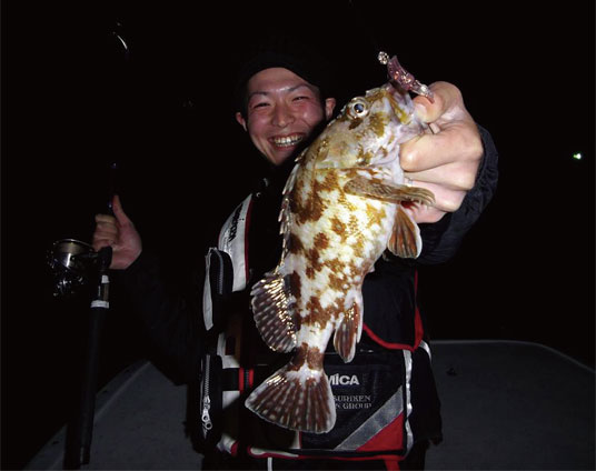 ルアーの場合はジグヘッドにカーリーテールかシャッドテールで、中層をスイミングで水平方向に広く探っていく。ヒットがなければジグヘッドを軽くしてスピードを緩くしてみる。底根の粗い場所を釣るときはテキサスリグに変更すればいい。
