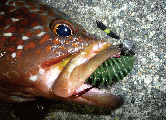 ベッコウゾイやムラソイは昼釣りが一般的だが、クロソイは圧倒的に夜釣りの方がよく釣れる。エサ釣りだとLEDウキに中通しオモリ3号くらい。スイベルをオモリ止めにして、ハリスは4号を50cm。エサはなんでもOKだ。最初はタナを底近くに合わせて、だんだんと層を上げていき、海面から2mくらいまで探ってくる。外灯があるときは浮いているかも知れないので場を荒らさないよう上から下へと探っていく。