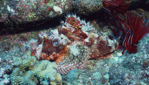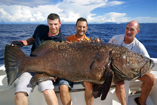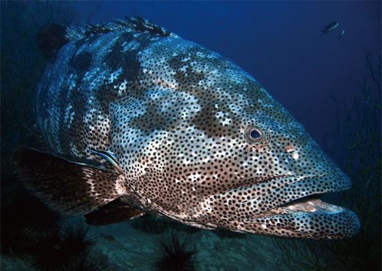 ロックフィッシュの仲間で一番大きく成長するのがハタ科のタマカイです。英名はGiant Grouper。繁殖時にグループを作ることからグルーパーと呼ばれます。体長2.7m、体重は400kgに達するというからその大きさはほとんどジュゴン並みで、サメをも喰らうと伝えられています。このモンスターの胸ビレには肉鰭類のシーラカンスのように、骨の入った腕があります。両者は姿も習性も似ていてデカイくせに岩陰が大好き。屋久島周辺のタマカイはテトラに潜んでいるというから、やはりロックフィッシュの仲間なのは間違いありません。