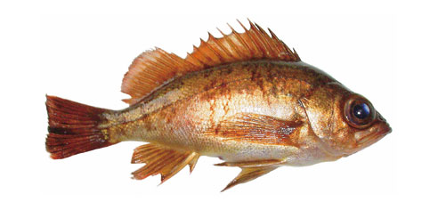 ![]() 全体に赤っぽい体色をしているので一般的に赤メバルとか金メバルと呼ばれる。体色の変化が大きく、生時褐色のクロメバルと混同しやすいが体高が低くてスマート。さらにウロコが粗い。ヒレが黄色っぽい。胸ビレが長いことでも見分けが可能。藻の多い浅い場所に居着くタイプで全体的に小ぶり。資源量は多い。 |