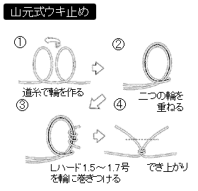 本家本元の山元八郎さんは、大型のヒラマサが釣掛かりして逃走したとき、ウキに水圧がかかって道糸が高切れするのを防ぐため、このウキ止めを思いついた。カゴ釣りだから当然ウキは大きく、オモリ負荷は10〜15号だったそうだ。 ヒラマサが走るとウキの穴をウキ止めが通り抜けて、完全フリーの状態になる。その結果、ウキの抵抗が道糸にかからず、高切れすることはなくなったという。 このように、山元式ウキ止めには、ウキの穴からウキ止めが簡単に抜けるという特徴がある。それでいて、ウキの穴に対してウキ止めの糸が斜め〜真横になればウキ止めとして機能する。 だから、山元さん自身は、クロ釣りにおいても、魚が走ったときはウキが通り抜け、抵抗がかからなくなるから、根に入らなくなる機能を重んじている。 もっとも、山元さんは現在、山元式ウキ止めだけでなく、遊動クッションゴムなどを組み合わせた『なるほど仕掛け』という概念でとらえている。