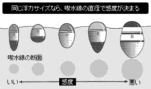 さて、前述のような反応がウキに出た場合の原因には、ウキ下、鈎、ガン玉位置の設定ミスなどが考えられる。 ところが、それをいくら修正しても鈎針かりしないことがある。実際に経験して歯がゆい思いをした人も多いだろう。実は私もその一人だ。 そんなとき、私はスリムなウキに替えるようにしている。つまり、より感度の高いものへと移行させるのだ。