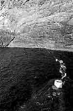 寒の時期は潮が飛ぶ沖磯はあまりよくない。写真のようなワンドがかえって好結果を生むことが多い。感度のいいウキ、軽い仕掛けでツケエをじっくり落とし込んでゆこう! |