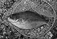 取り込みは、右手で竿を持っているならば、竿でゆっくり弱った魚を左側に回しておいて、さっとタモで掬う。左手ならその逆だ。 ついでに書いておけば、あんまり引かないなあと思っていると、やがて魚体が見えて、お〜、デカイ! しめたと思ってキュッと糸を巻いたり、グッと竿を起こしたりした途端に、ガツーンと突っ込まれてしまうこともよくあるので注意しょう。 まず60cm級だったら、ウキが見えて、続いて魚体が見えてから、三回は底に向かって突っ込むと思っておいたほうがよい。