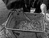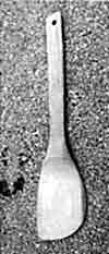 別項でも述べたが、私はマキエをいっペんには作らない。クロ釣りの場合、小さいバッカンで何回かに分けて作っている。したがって、そのくらいの量(オキアミ一角+集魚剤半袋)は、シャモジで混ぜるのにちょうどいいのである。 実際に使ってみれば分かるが、シャモジというものは、驚くほど混ぜるのに適している。日本人だからかもしれないが、妙に手にしっくりくるし、チヌベらには一ヶ所角がついているので、バッカンの隅々まで混ぜることがでさる。まさに、釜の中のご飯を混ぜるような感覚で、マキエを作ることができるのだ。