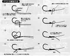エサ盗りが多い時期はフグやカワハギにかじられて、編みつけ糸は次第に解けてくる。しかし、私は少々解けても気にせず釣りを続ける。 編みつけ糸は赤やピンクが多く、魚にはオキアミの一部としか見えないと思うからだ。 |