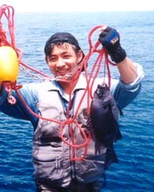 ただし、ギャフにしても玉網にしても同礁者がいることが原則であり、単独ではなかなかうまくいきませんので、それなりの覚悟は必要です。ちなみに私は過去、2度ほど取り込むために海に飛び込んだことがありますが、決して真似をなさらないように・・・。