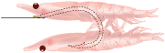 雌雄があり、雄は頭胸甲と呼ばれる甲羅が小さく、腹部がよく発達しており、雌は頭胸甲が大きく全体的にふくよか。つけ餌に使うのは、身持ちがよい雄が適していると言われている。