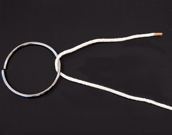 ① まずラインを環に通します。