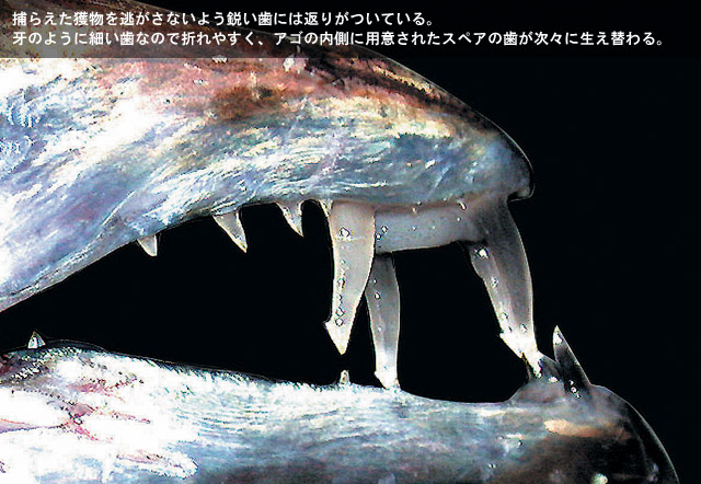 タチウオ科の魚類はサケガシラやリュウグウノツカイとよく似ていますが、分類上はかなり離れたグループに属しています。体表が鏡のように反射するのは、自分に周囲の景色を映し込んで光学的なステルス性を得るため。帯のように扁平な体型には、移動時のエネルギー消費を抑える役目があります。別々の種類でありながら、同じような環境に適応した結果、同じような形状を獲得することを収斂進化と呼びます。