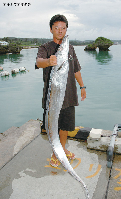 2006年6月に沖縄で 5.4kg 全長 240cm のモンスターが釣り上げられました。これはたぶんオキナワオオタチだろうと思われます。同年11月に錦江湾で釣られた 5.2kg 175cm は本タチウオでした。2004年10月の新聞報道によると、長崎県松浦市で水揚げされたタチウオは全長 2m で 10kg もあったそうです。