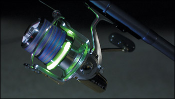 どちらもエサは冷凍キビナゴが一般的ですが、現地調達の活きた小魚を使うノマセ釣りの威力も絶大です。投光器の灯りにカタクチイワシが群れてきたら、網ですくうかサビキで釣り上げて活きエサにしてください。竿はインターラインの1号程度。リールはタナ取りが簡単で、アタリが出てからラインの送り込みができる小型両軸がお勧め。ウキは使わず、オモリは中通しの0.6~3号。チモトの上、30cm 位のところに ケミホタル25 をセットするのを忘れてはいけません。
