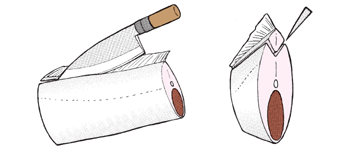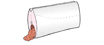 ![]() ③ 腹を割らずにワタを抜きます。新聞紙を敷いておくと後片づけがラクです。ここまでで下ごしらえは完了! あとはサシミ・焼き物・揚げモノと自由自在です。 |