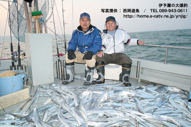ウキもオモリもつけず、自然にエサを沈める途中でヒットしてきますが、いったん沈めて海底から曳いてくることも、もちろんウキをつけてタナを探ることも可能です。エサのサンマは数本から10本ほど。尻尾を切って使うと臭いが出るのでヒットする確率が上がります。