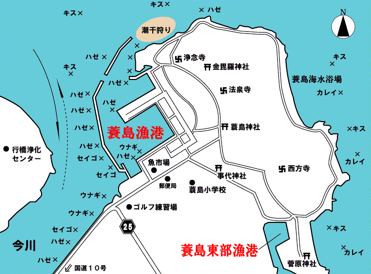 また、蓑島港は北九州を代表する潮干狩の名所。アサリやマテガイが掘れるのでシーズンともなればたくさんの行楽客で賑わう。 |