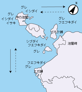 沖の池屋で秋に良型のイサキが釣れるほか、夏の夜釣りで、アラ・イサキ・シブダイ・フエフキダイなどバラエティに富んだ釣果が楽しめる。