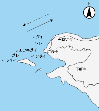 下甑島の北部、鹿島村の最北西端にあたる。円崎灯台は断崖の上にたっており、足元からドン深になっている。付近の海底はゴロタ石状で沈み瀬も多い。