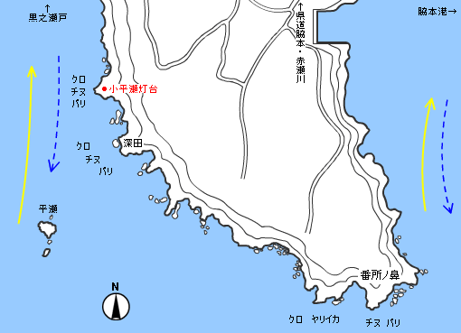 外海に面しており、クロとチヌの魚影が濃く、好釣場になっている。チヌは3月、クロは7月が中心だがシーズンは短い。11・12月は小平瀬灯台下からヒラスズキが狙える。1・2月はイカ狙いが面白い。