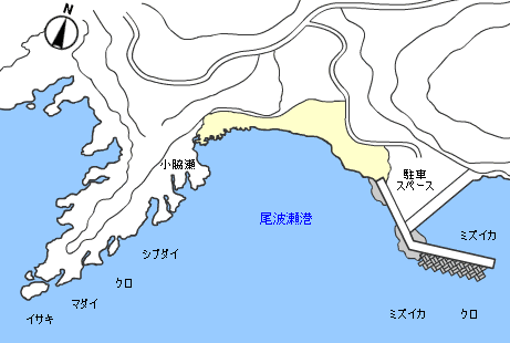 佐多岬の西岸にあり、イサキの魚影が濃いところ。冬場はクロ釣り。4月からはマダイの良型があたる。波止場よりも手前の小脇瀬がポイントだが西風には注意したい。港の東側には小崎などの名磯もある。
