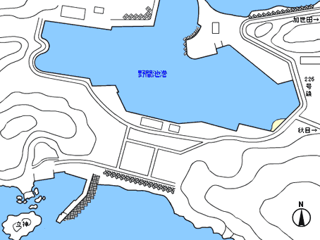 野間岬は北側の人気が高いものの、北西の風がつよいシケの日には南側でも釣りができる。凪の日に南側に渡る釣り人は少なく穴場となっている。