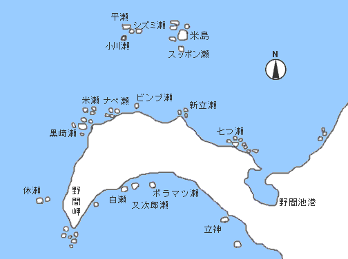 薩摩半島最西端、野間岬の先端には名礁ウグロの瀬があり、上物・底物とも人気が高い。センガンは一級の瀬なのでクーラー一杯釣らないと不漁とまで言われるほどだ。
