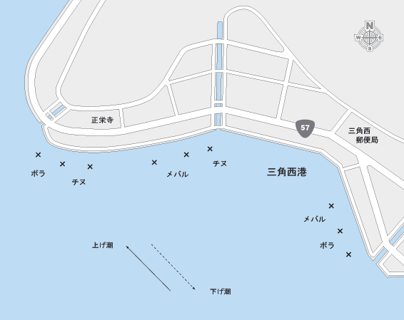 ファミリーフィッシングにお勧めの釣場である。足場良し、トイレ有り(公園内)で安心である。大潮から中潮の下げ潮が狙い目で、チヌの大物も期待できる。