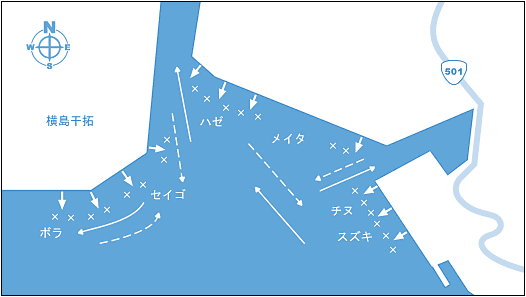 ボラ、セイゴ、ハゼ、メイタ、チヌ、スズキ