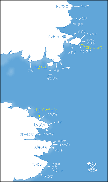 各ポイントとも一級のポイントで、特に春と秋のイサキが良い。夜釣りで大型のマダイが狙える。
