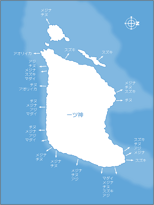 チヌ、メジナ、スズキ、マダイ、アジ、ヒラマサ、ハマチ、アオリイカ