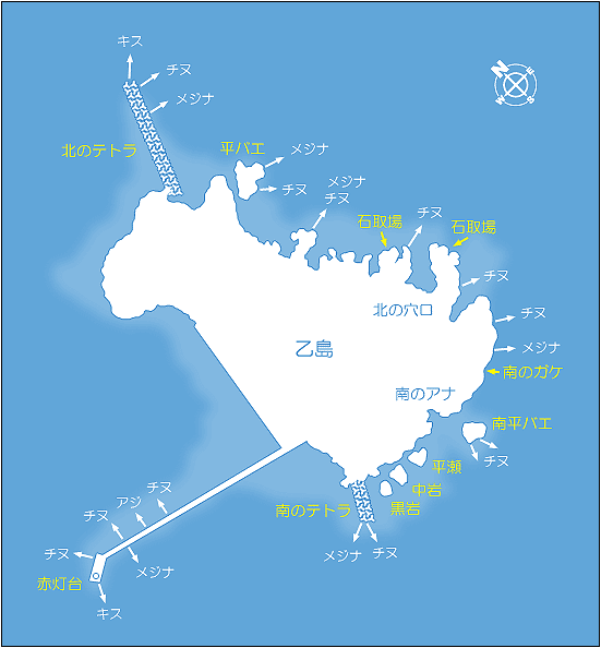 メジナ、キス、チヌの好ポイントである。防波堤のダゴチン釣り、落とし込み釣りでチヌが期待できる。