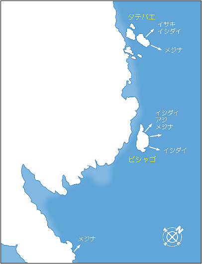 ハマチ、イサキ、メジナ、アジ、マダイ、チヌ
