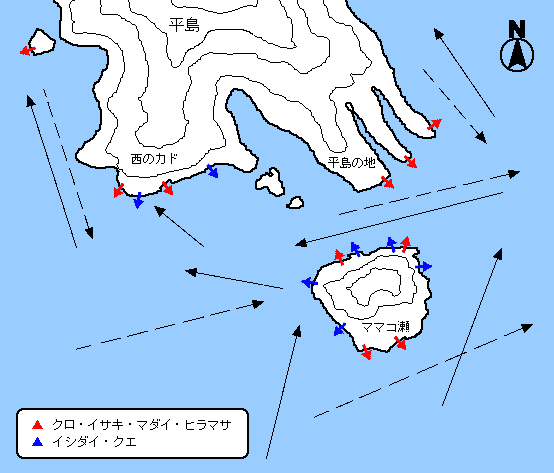 ママコ瀬は平島本島のハナレに位置し本島との水道は潮切れが抜群で大型魚の通り道になっている。