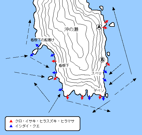 フカセではA点の沈み瀬の際を丹念に探っていけば大型の数がでるポイントである。