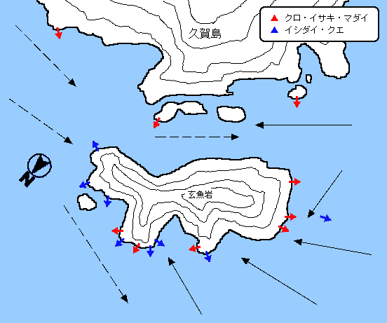西側に面し冬の季節風に弱い。春先の凪の日に上礁できれば良型のクロは数釣りが期待できる。