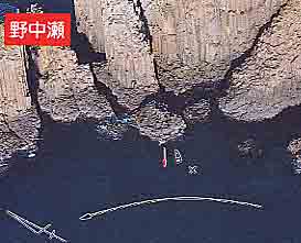 西のハナ≠ニ西の瀬≠ニいう上阿値賀島を代表する有名な釣場の中間に位置するが、ワンドの奥にあるため潮切れもあまりよいとはいえず、正直なところ、実績と言う点でも二つ瀬に見劣りする。