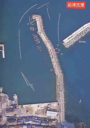 ここから佐世保との間に一日三便のフェリーが通っている。港の規模は大きく、波止も立派なものがあるが、大きすぎるとかえって釣りには不向きな面もある。特に前津吉の外波止は沖側から先端にかけて消波ブロックが入っておりこの上から竿を出すとなると非常に足場が悪い。 一般に波止は先端が好ポイントになることが多いが、ここの場合は水面下の消波ブロックが広がっているため釣りづらい。したがってカゴ遠投の小グロ釣り以外は難しい。 チヌの本命は先端内側のA。足場はコンクリートだから申し分ない。先端まででとぎれた消波ブロックがカケ上がりを形成している。港外に出る下げ潮港内に入ってくる上げ潮ともゆったりしているから、流す範囲が狭くとも釣りづらいことはない。 条件としてはやはり時化た方が釣りやすい。マキエ次第では二から三ヒロのタナでも食ってくる。凪では海底が見えるほど透明度が高いから、朝夕のマズメに静かに釣ることを心がける。また、このときは竿一本以上の深みを狙う。 もう一つのポイントBは波切れ波止との水道に当たり、潮通しがよい。この付近だけ消波ブロックが出っ張ってないので釣りやすくもあるが、チヌが消波ブロック沿いに走ったときは取り込みが難しい。固定ウキで釣る場合は消波ブロックの際を、水道中央部の深みを流すときは移動ウキを使用する。 難点は足場が悪いのと漁船が往来すること。特に早朝は漁船がひっきりなしにこの狭い水道を通るから、釣りにならないことがある。地元勢がカゴ釣りでクロを狙うのもここ。 |