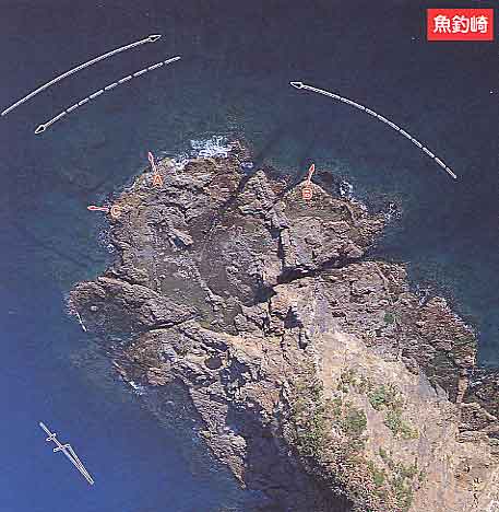 宮の浦のマダイ釣場といえば、どうしても高島、尾上、頭ヶ島が頭に浮かぶ。志々伎崎方面はチヌ、クロ釣場のイメージが強く、事実マダイの実績は低いのだが、この魚釣崎≠セけは例外。マダイが釣れるだけの水深と潮の流れがある。ただ潮の流れといっても本流が沖のほうを通り、瀬際はそれほど速い潮が動かない。そのため仕掛けは遠投することが第一の条件となる。 そのマダイの好ポイントがA。足場は平坦で広く、ズラリと並んで竿出しできる。もちろん観音釣りのほうがマキエがよく効く。大潮の満潮時には低い部分が水没するから、それだけは要注意。 クロは主にBとC。サラシの切れ目で400〜500g級が中心に当たる。ウキ下は二ヒロ半〜三ヒロ。サラシがあれば同じ深さでチヌも食う。釣場としてはあまり人気のないところだが、前述したように足場が広く平坦だから、ビギナーでも安心できる。夜釣りも安全だ。 |