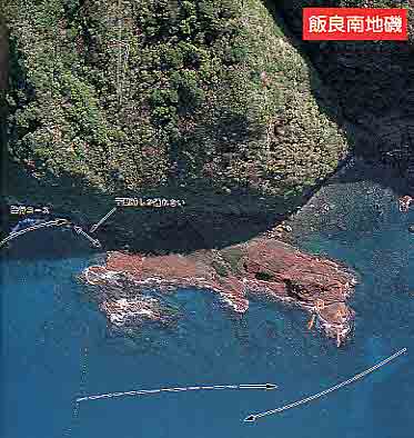 飯良港の南側から提に至る道路の脇に車を停め、そこから徒歩で約25分。海岸線に出たら後は岩場を辿る。途中一か所、釣場の少し手前に満潮時は通りにくいところがあるので、潮と波を見て釣行すること。 ポイントは突端Aだが、足元から根が張り出しているので多少釣りづらい。また、潮が引いていればここから竿が出せるが、満ち込んでくれば足元を波が洗う。そうなれば少し右側のBから竿を出す。どちらも足場はなだらかに傾斜しており、波が高いと追い上がってくるので要注意。対象魚は主にチヌ。竿二本程度投げてそこから流す。タナは二〜二.五ヒロ。カゴ釣りでクロ、イサキ。右手から流れてきて左沖に出てゆく下げ潮が狙い。下げ中潮に釣果が上がっている。 |
