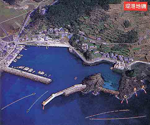 港に近く、家族連れでも安心して釣行できる手軽な釣場の一つ。とはいえ、条件としてはサラシが欲しいので、波が高いときなどは十分注意してほしい。 ポイントは写真のように四か所あり、いずれも沖側に竿を出す。沖と言っても正面にウサギの鼻を突端とする半島が延びているので、いわばワンドの中を釣ることになる。そのため潮は上げ下げ友右手の沖へ出ていくが、入り江の奥に位置する関係でまったく動かない場合もある。 対象魚はA、B、C、Dともチヌが本命。夜釣り、もしくは朝夕のマズメがチャンス。日中はサラシがないとまず望めない。チヌ出れば大型が多く、2s級はザラ。Bでは60cmの記録もある。クロは小型が中心。また6月以降はバリが多い。 コンクリート波止の突端Eはカゴを遠投してのマダイ、イサキ狙いが多い。マダイは7.8sの実績もある。当然夜釣りが主体となるが、途中の消波ブロックは足場が悪く、満潮時は水没するのでよほど慣れた人にしかお勧めできない。足場自体はコンクリートだから心配はない。 |