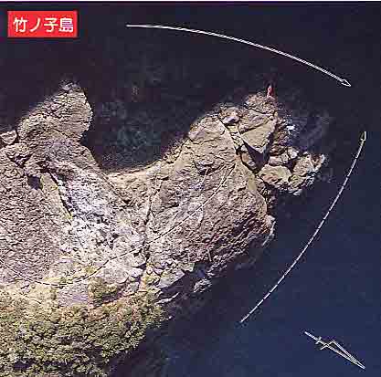 途中までは獅子の地磯と同じ陸行コースを辿る。異なるのは小川の流れ込みに沿って海岸まででること。それから竹ノ子島の南岸を伝って突端にでる。ポイントの少し手前にある大きなワレは岩場伝いに行くと通れない。だからその手前から突端まで下る。所用は約十分。