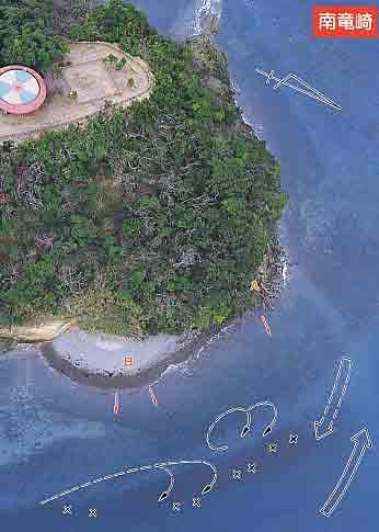 ポイントは右端と砂利浜部の二ヶ所。どちらも下げの本流、反転流狙いの釣り場。地元勢はシーズンになると平戸大橋当たりを釣らずにここだけに絞る人も多いようだ。超遠投に自身のある人向きの釣り場。 Aは大田助方向より来る下げ潮の本流へダイレクトに狙う。かなり投げないと根掛かりの連続なのでテクニックが必要。タナは七ヒロ〜九ヒロくらいを調節する。流す距離は100m前後でよい。大橋方向からの下げの戻りと、大田助からの下げの本流とが接するところがひとつの狙い目。大ダイ、大イサキが出る。投げるときは背後の岩、林に注意しないと危ない。 Bは大橋からの下げの戻りに合わせて流す。ここも超遠投が必要である。若干タナは浅く、六ヒロから八ヒロくらいでやるとよい。またこの周辺は寒い時期は藻が多く釣り辛いので、藻がなくなる3月から9月くらいがよい。道糸は糸フケの関係上、最低300mは巻く必要がある。 |