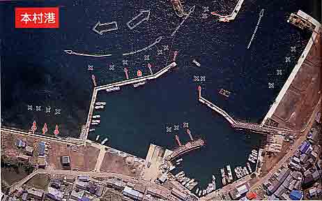 写真上の沖波止、中央の各波止が釣場だが、全体的に見て北磯方向へ行けない日の予備的釣場。仕足沖波止は昼、夜共に中型マダイ、イサキ、チヌ、クロなど魚影は濃い。 沖波止は一部しか移っていないが、右端のAで夜釣りのイサキ、チヌ(カゴ釣り)、昼のフカセで中型クロ、メイタが上がる。カゴ釣り、フカセ釣り共に両潮やれる。タナは、カゴ釣りで七ヒロから十ピロで遠投が有利。フカセはニヒロから深いところで五ヒロくらい取る場合もある。Bの大波止は中央曲がり部から先端にかけてがよい。ただし中小物が主体。しかし夜釣りのチヌは2kgを越す大物も出る。フカセの場合、タナはAと同じくらいを調節する。 Cは奥まったところにある、釣人も少ないのでゆっくり小物狙いでやるには一番のところ。メイタ、小グロ、メバル、タナゴなど。まだ他にもたくさんの釣場がある。Aは別として総体的にファミリー向き。薄香港よりフェリー利用で。 |