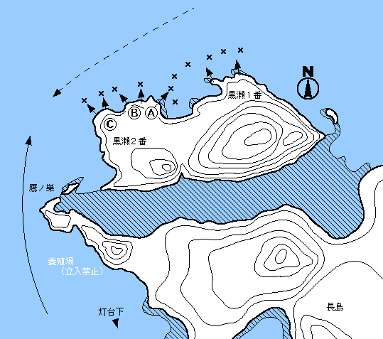 黒瀬2番は足元も釣りやすく、ワンドの入り口付近を竿1本半程のタナでねらうとチヌの大型が釣れる。沖の潮通しのよいところはチヌも釣れるがクロがおもしろい。沖目を狙ってイサキ、マダイも釣れる。