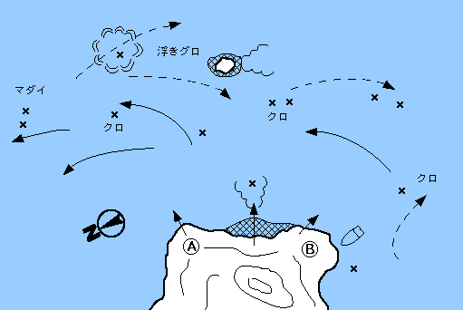 周辺のビシャゴ大バエとそのハナレもクロがいい。このビシャゴは人気があるせいか、とくにナギとなる冬季は異様なほど汚い。一部の心ない釣人の仕業だということはわかるが、何とかならないものでしょうか。