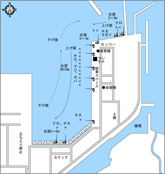 カゴ釣りの人気場所でもあり、20〜30cmクラスのアジが釣れる。